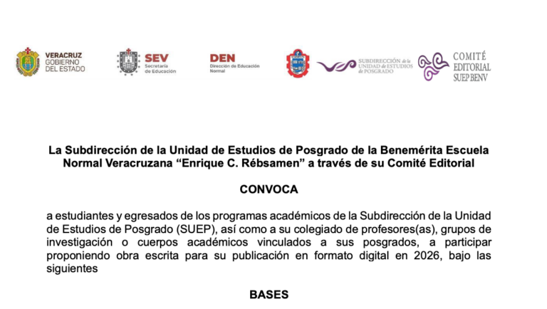 Académicas y académicos de la Subdirección de la Unidad de Estudios de Posgrado de la Benemérita Escuela Normal Veracruzana presentaron avances y resultados de investigación con el fin de fortalecen la formación docente, la atención a la diversidad, la innovación pedagógica, así como el análisis de problemáticas educativas contemporáneas. Esta Subdirección reconoce y felicita la […]
