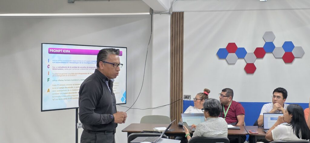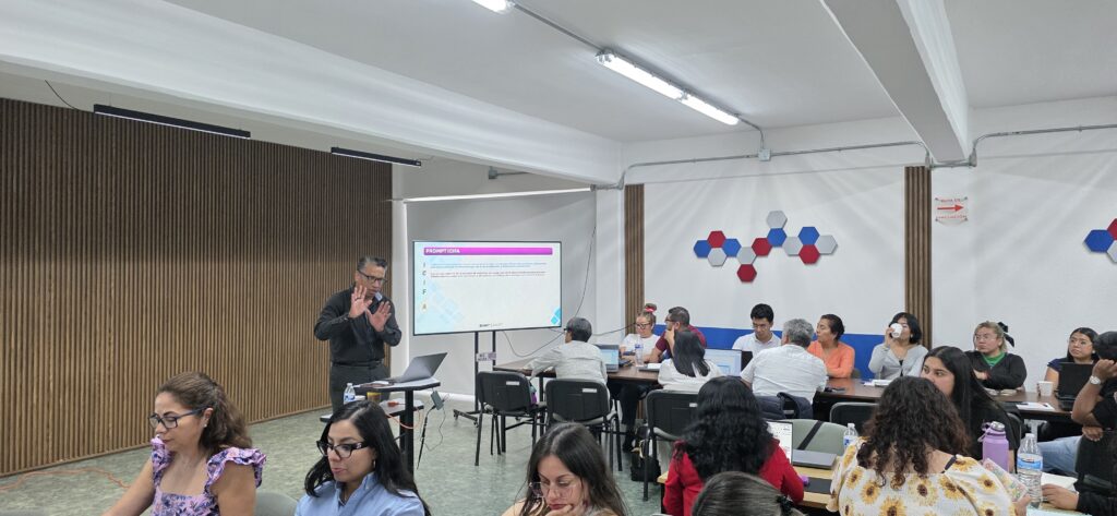 Durante el taller, las y los participantes exploraron un conjunto diverso de plataformas que actualmente están transformando la manera en que se accede, organiza y produce el conocimiento. Entre ellas, se abordaron herramientas ampliamente conocidas como ChatGPT, Gemini, DeepSeek y Claude, que permiten apoyar la redacción académica, la generación de ideas, la estructuración de contenidos y la resolución de problemas complejos. Sin embargo, el taller también abrió el panorama hacia herramientas más especializadas en investigación, como Consensus, Perplexity y SciSpace, que facilitan la localización de literatura científica, la comprensión de artículos académicos y la identificación de tendencias en distintos campos del conocimiento.