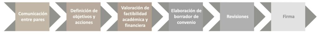 La generación, gestión y seguimiento de convenios que permitan formalizar tales vínculos.